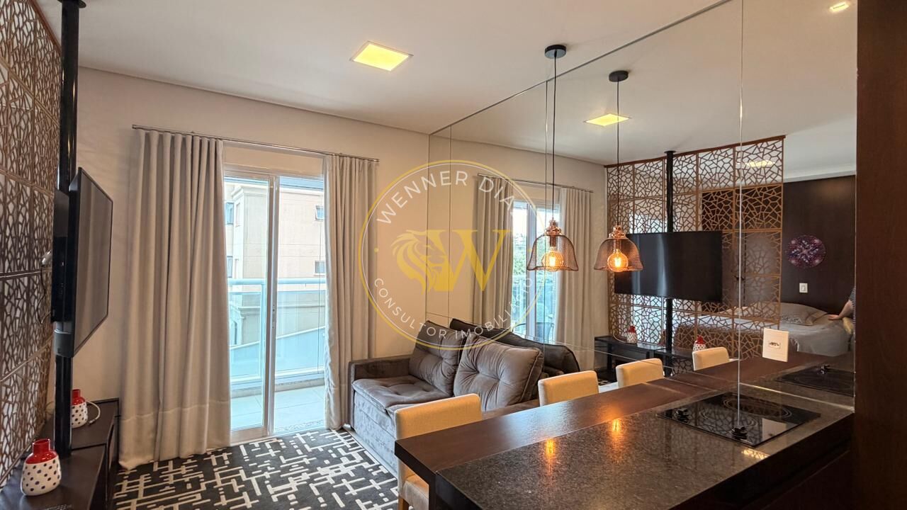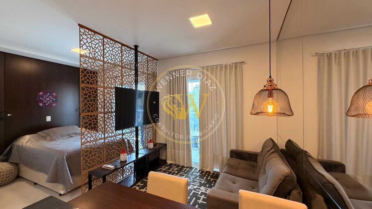 Studio totalmente decorado e mobiliado, com acabamento de alto padrão, pronto para acomodar você que busca um lugar tranquilo com as praticidades do dia a dia.