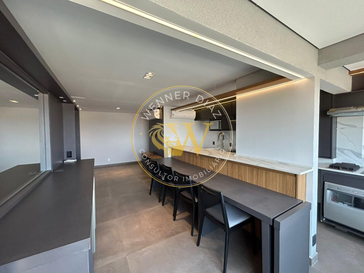 São 2 suítes amplas, garantindo privacidade e comodidade, além de um living integrado com projeto de iluminação completo que valoriza cada ambiente. A cozinha já está totalmente equipada, com bancadas em pedra e excelente aproveitamento de espaço.