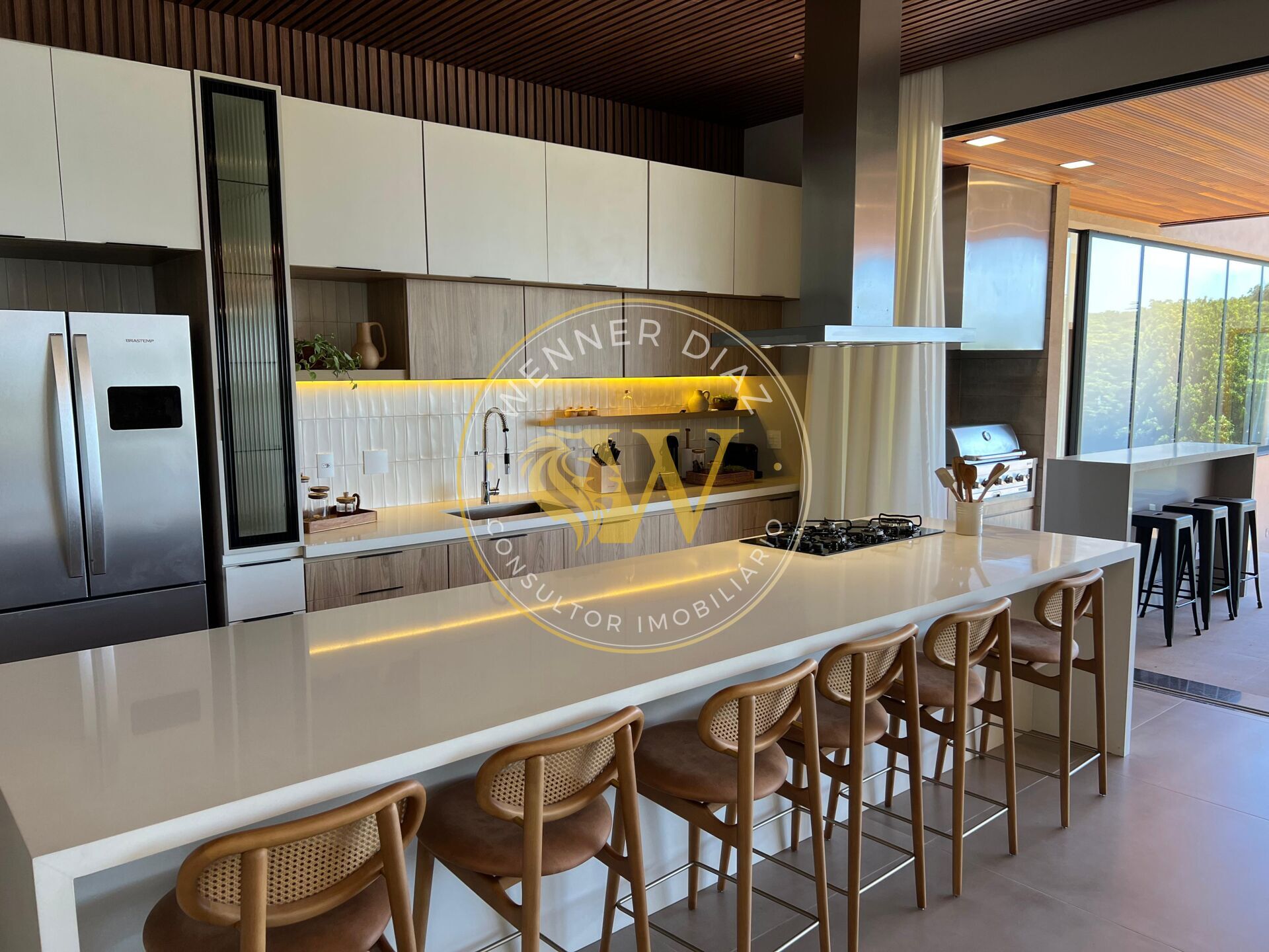 O imóvel conta com 4 suítes master, sendo a suíte principal um verdadeiro refúgio, com closet, cuba e ducha dupla e vista panorâmica para o rio. A área social integra sala de TV, cozinha planejada e varanda gourmet, criando um ambiente perfeito para receber com conforto e estilo. A churrasqueira Char-Broil Medallion em inox 304, com cinco queimadores e exaustor industrial, reforça o padrão elevado do espaço.