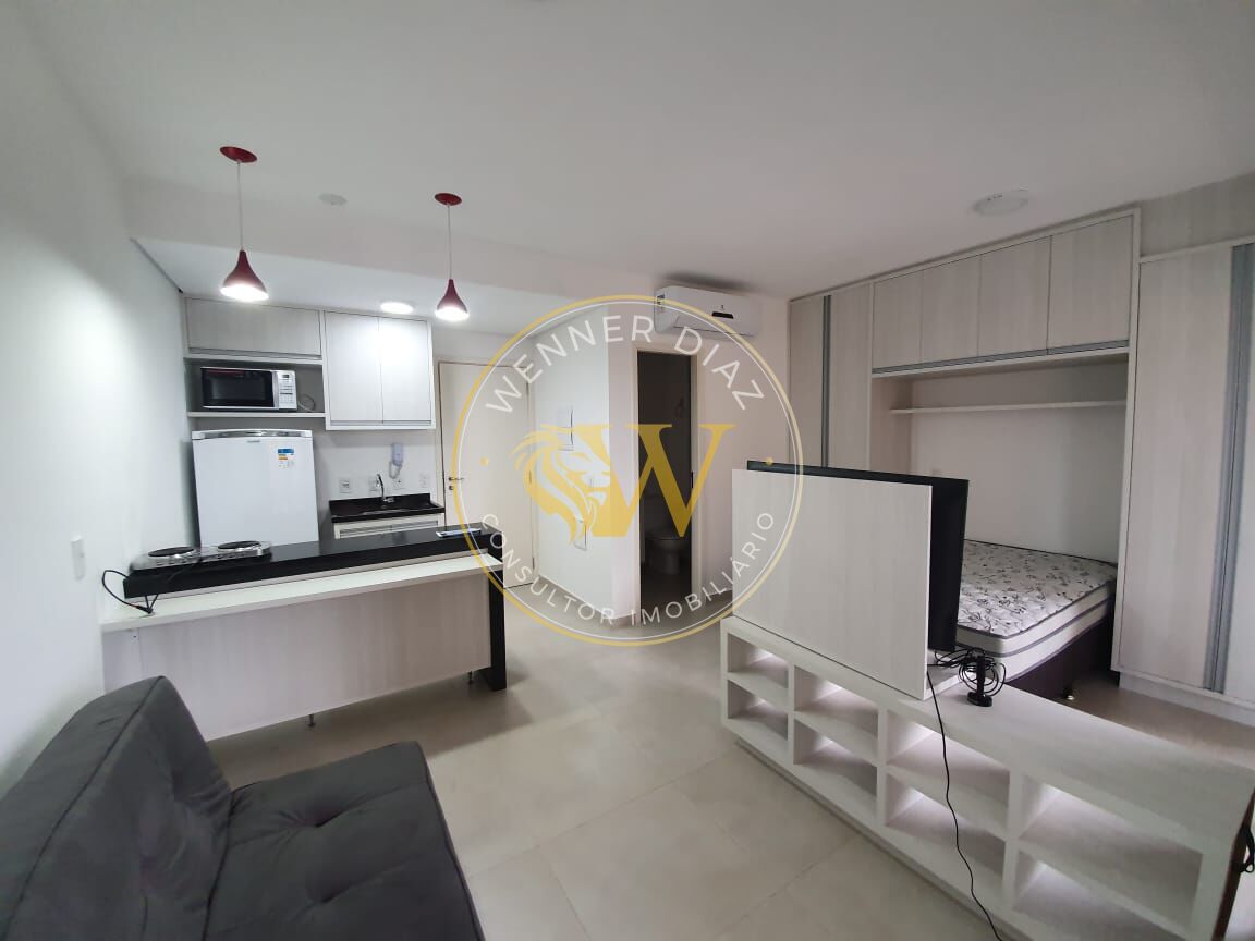 Studio totalmente decorado e mobiliado, com acabamento de alto padrão, pronto para acomodar você que busca um lugar tranquilo com as praticidades do dia a dia.