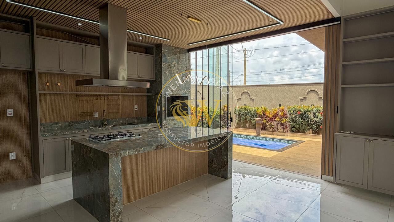 Conta também com lavabo, escritório, lavanderia e garagem coberta. A cozinha integrada à varanda gourmet proporciona um ambiente perfeito para receber amigos e familiares, criando uma atmosfera moderna e acolhedora.